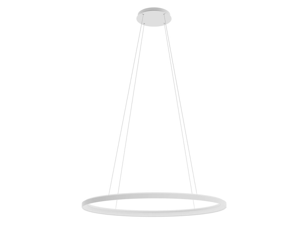 Stropní svítidlo pro interiéry vybavené SMD LED diodami s přímým/nepřímým světlem, možností stmívání a regulace teploty barevného světla od teplé bílé po neutrální bílou. Konstrukce z hliníku a kovu lakovaná do broušené bílé barvy, difuzor pro přímé světlo z bílého opálového akrylátu a pro nepřímé světlo z polystyrenu. Fotografie může být ilustrační.