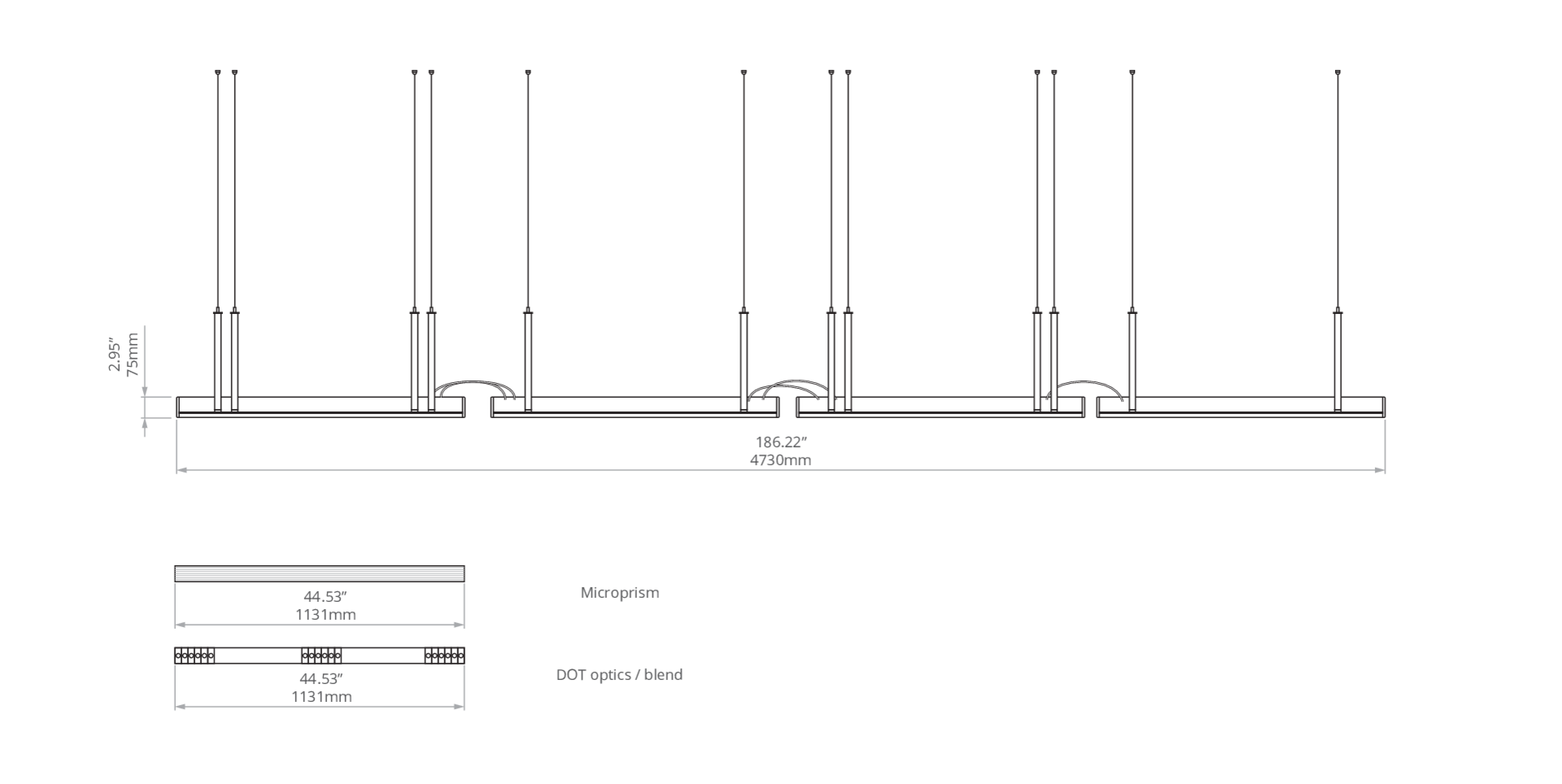 Svítidlo KLUŚ Tulip MANY ZW L=1131mm, DOT/Blenda, 43W, 4000K, DALI, stříbrný